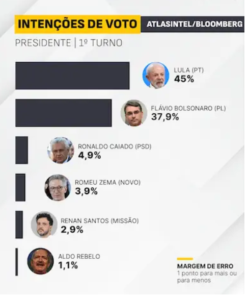 A nova pesquisa AtlasIntel/Bloomberg divulgada nesta quarta-feira (25) mostra avanço de Flávio Bolsonaro (PL) e recuo de Luiz Inácio Lula da Silva (PT) nos principais cenários testados para 2026. Os números indicam empate técnico no segundo turno e redução consistente da vantagem que o presidente registrava no início do ano.